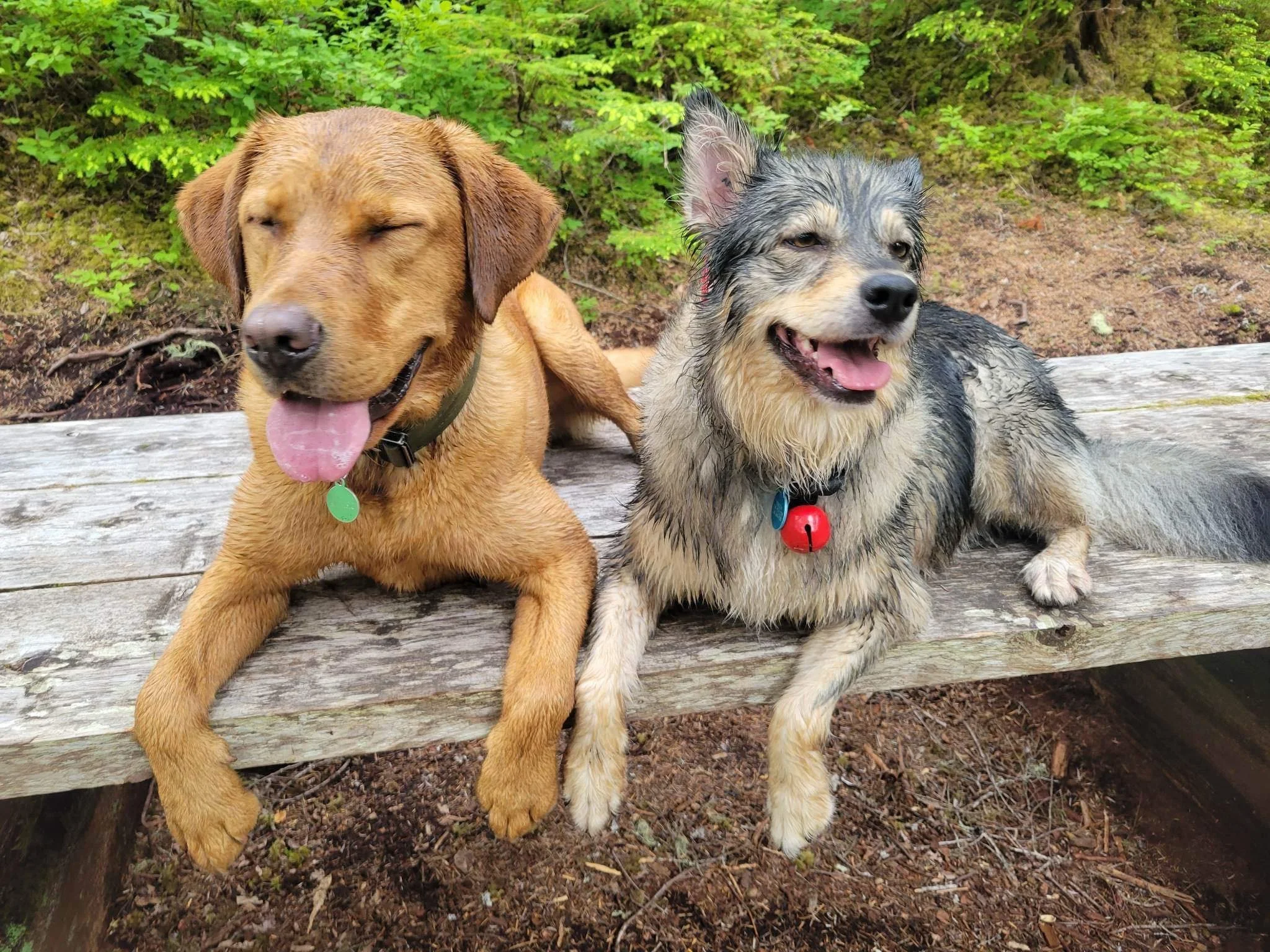 "We have taken several classes with Hana as well as recently participated in Terrace's first scent/disc trial organized by her! With Hana's guidance and preparing us, our lab Kumho earned his level 1 title and 2 ribbons towards Ranger 1 in scent detection and had a blast competing in the disc trial. She also has helped me in other classes gaining a solid recall and basic obedience with him as well. Our other dog Tikka used to pull terribly unless she had a pinch collar on and thanks to loose leash walking classes and obedience and lifeskills, she now walks by my side in a slip leash. Can't recommend her enough and am so thankful! She is your go-to person for all your dog training needs!"